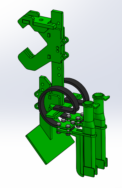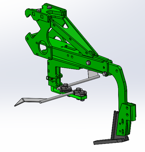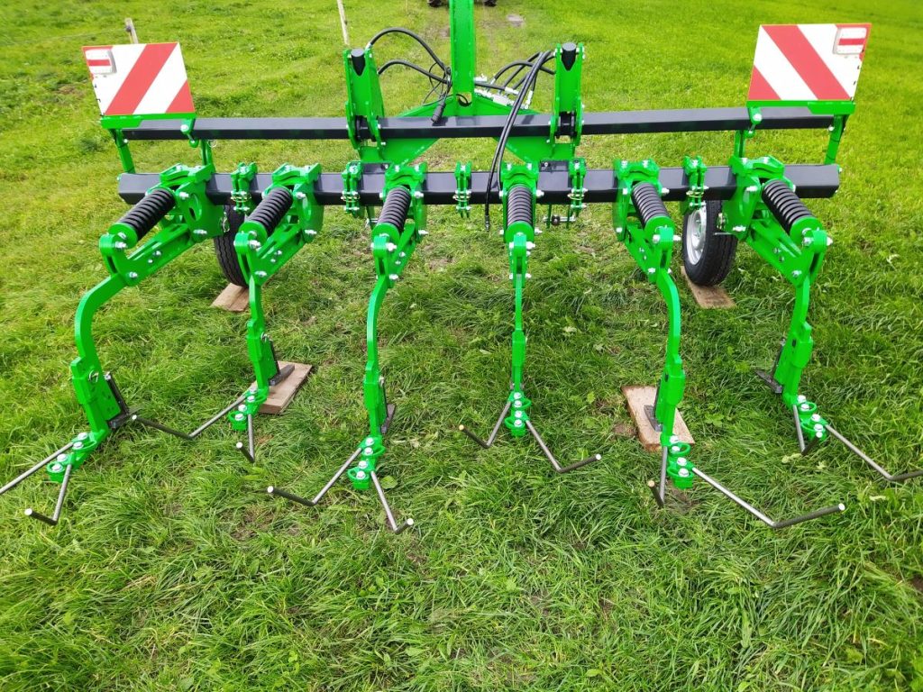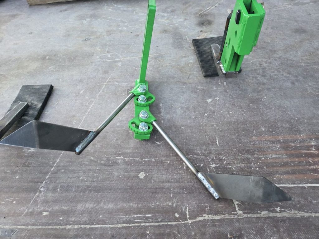 Vorne kann ein zusätzliches Hackelement montiert werden, um möglichst nache an die Kulturpflanze zu Hacken, mit ihm wird die Erde eher weggezogen.
