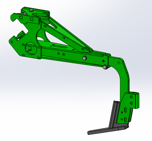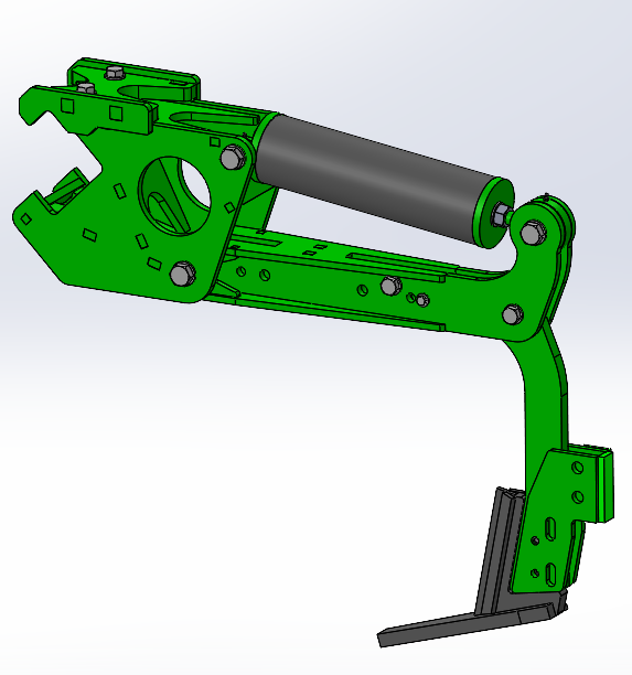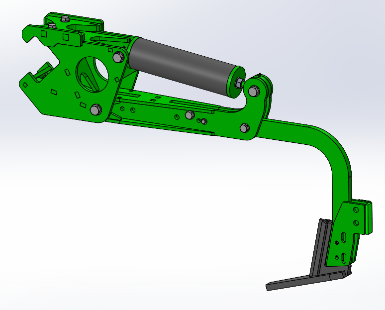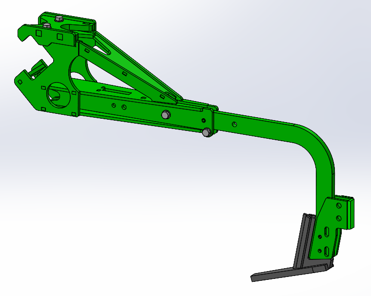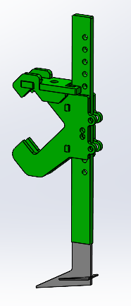 Das Scharelement mit Scherbolzensicherung kann auf dem Trägerbalken an beliebiger Position montiert werden, es muss zur Montage / Demontage nicht seitlich ausgefahren werden. Am Schar ist die Halterung für die Zusatzwerkzeuge integriert, welche ohne Werkzeuge gewechselt werden können. Der Scharspitz kann nach unten ausgefahren werden, er ist mit einem Spannstift gesichert, Seine Form garantiert eine exzellente Erdteilung ohne die Erde nach oben zu nehmen . Schar hinten und Schar vorne abwechselnd montiert, ergibt einen optimalen Erdfluss.